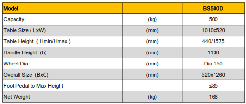 รถโต๊ะยก รุ่น BS500D รับน้ำหนักได้ 500 กิโลกรัม